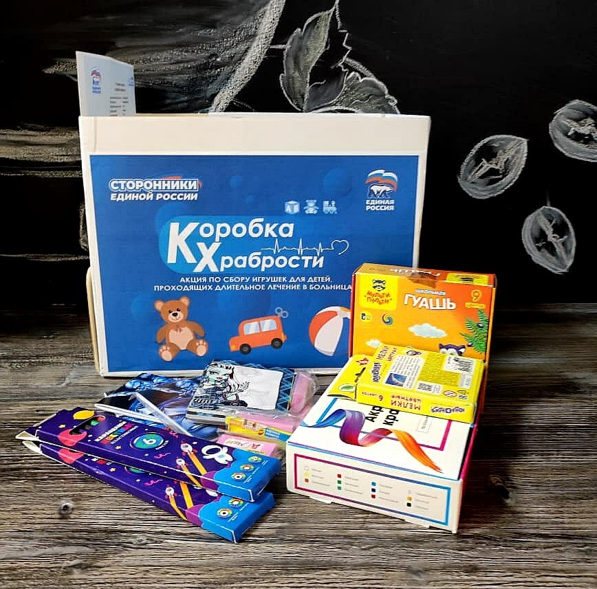 Примерный перечень предметов для наполнения «Коробки храбрости»: машинки, куклы и другие игрушки (кроме мягких); игровые наборы, пазлы, головоломки; развивающие и настольные игры; конструкторы, наборы для творчества; канцелярские товары (фломастеры, карандаши), детские раскраски; детские книги.