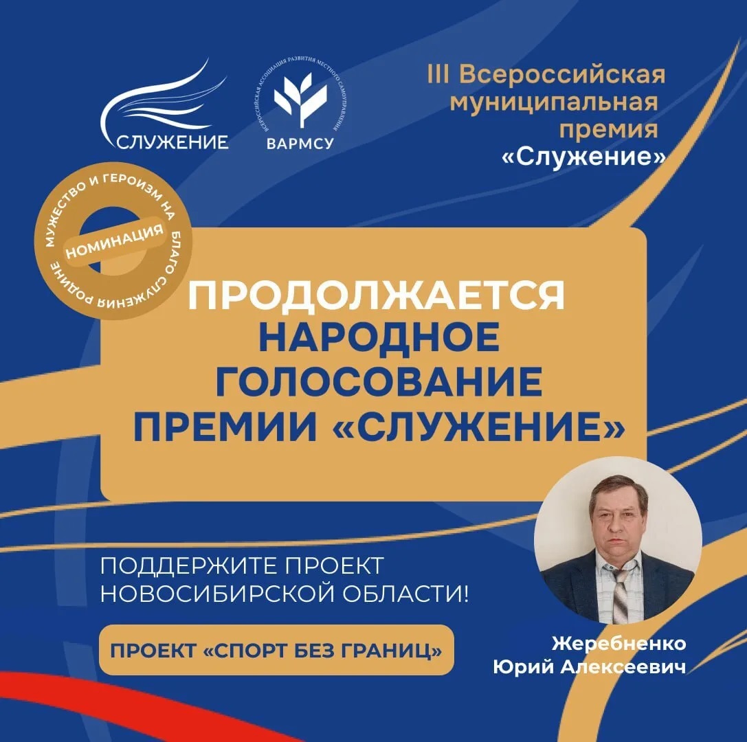 Поддержать Новосибирскую область в борьбе за премию можно по ссылке ( https://pos.gosuslugi.ru/lkp/slujenie-2026/ ): нужно выбрать номинацию «Мужество и героизм на благо служения Родине» и нажать «проголосовать» под проектом «Спорт без границ». Премия ( https://vk.com/premia_sluzhenie ) поводится ассоциацией ВАРМСУ ( https://vk.com/varmsu ) при поддержке Администрации Президента РФ. Поддержим наш регион?