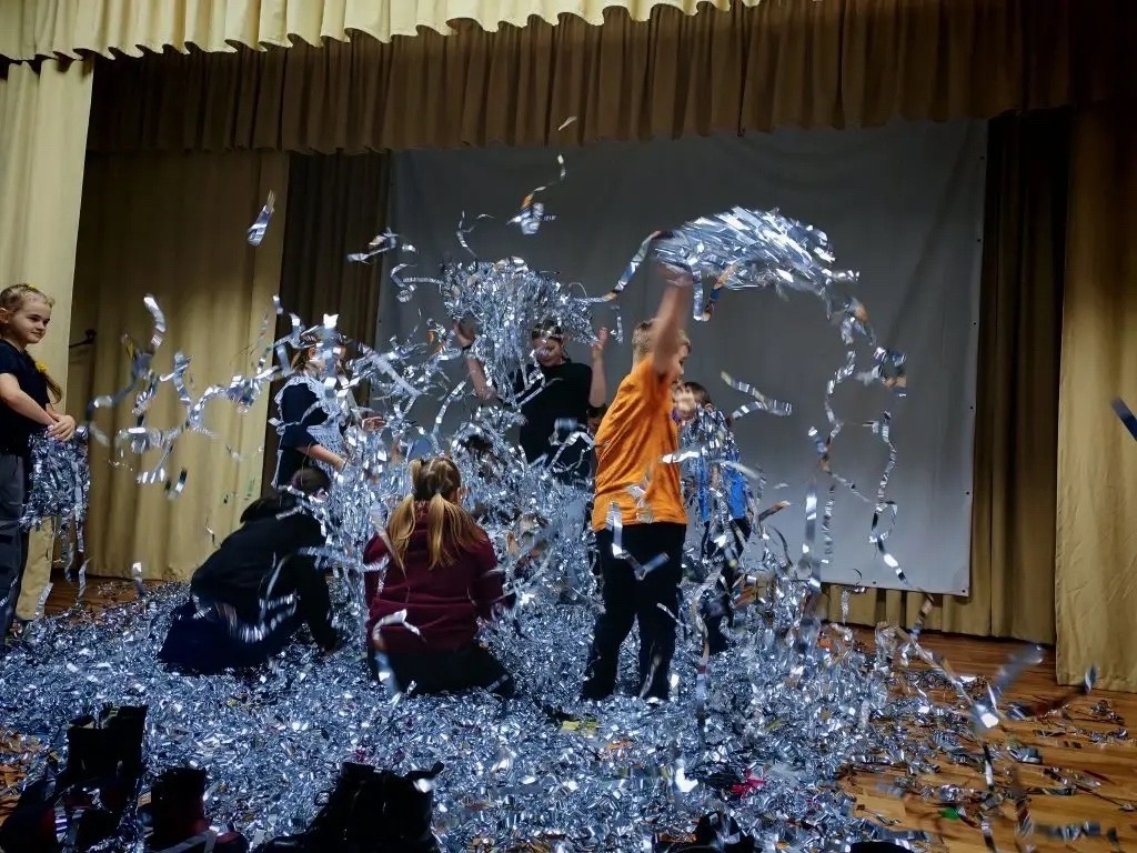 Ребят на своих станциях поджидали сказочные герои, которые приготовили для учеников интересные задания, игры. Дети отыскали все части потерянной книги, и у них получилось найти сундук с сокровищами!