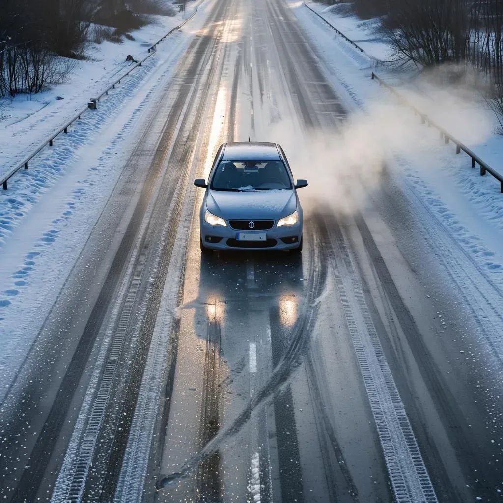 Гололед и снежный накат на зимней дороге, вызывает вероятность юза и заноса — а это самое опасное увеличение тормозного пути.