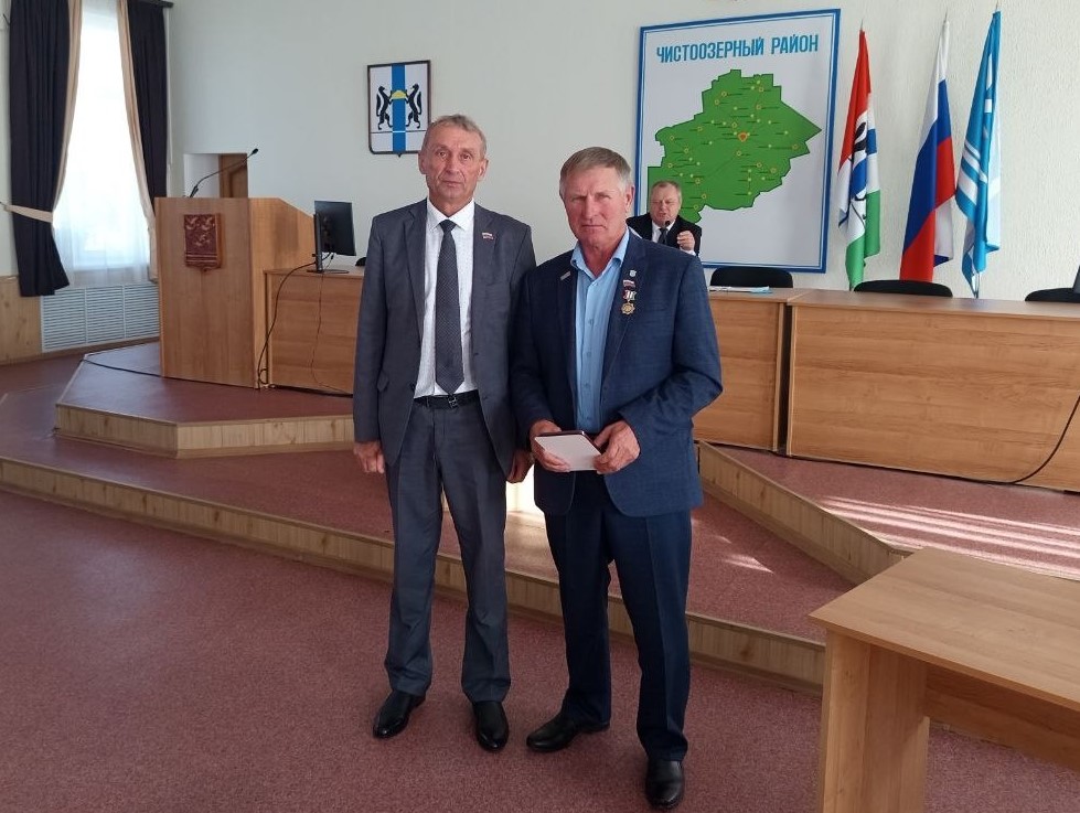 Затем была избрана счетная комиссия по избранию председателя Совета депутатов Чистоозерного района. Кандидатура на эту должность была одна – Владимир Степанович Самохин. Депутаты единогласно проголосовали за предложенного кандидата. Первым делом вновь избранный предсдедатель провел церемонию награждения. Александру Анатольевичу Семину была вручена медаль «Общественное признание». Медаль Законодательного Собрания Новосибирской области «Общественное признание» является формой поощрения граждан Российской Федерации, иностранных граждан и лиц без гражданства, за большой вклад в экономическое, социальное и культурное развитие Новосибирской области, профессиональное мастерство, многолетний добросовестный труд, общественную деятельность. Александр Анатольевич Семин – известный работник сельского хозяйства, первый фермер Чистоозерного района.