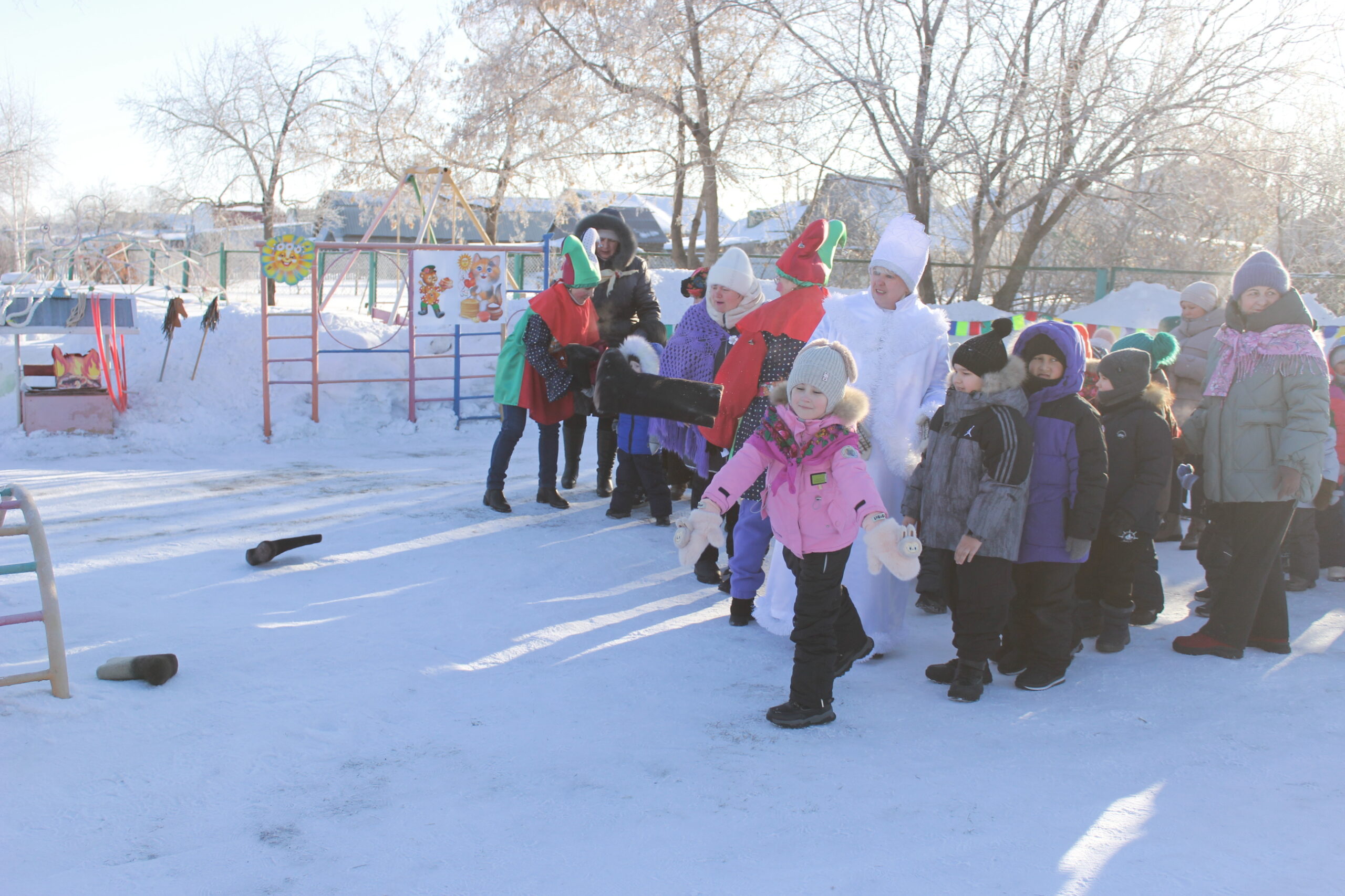 Педагоги подготовили интересное познавательное мероприятие на свежем воздухе. Дети водили хоровод, пели песни, читали стихи, играли в весёлые игры. Главными заводилами были Скоморохи. В заключении ребята с удовольствием отведали вкусные блины.