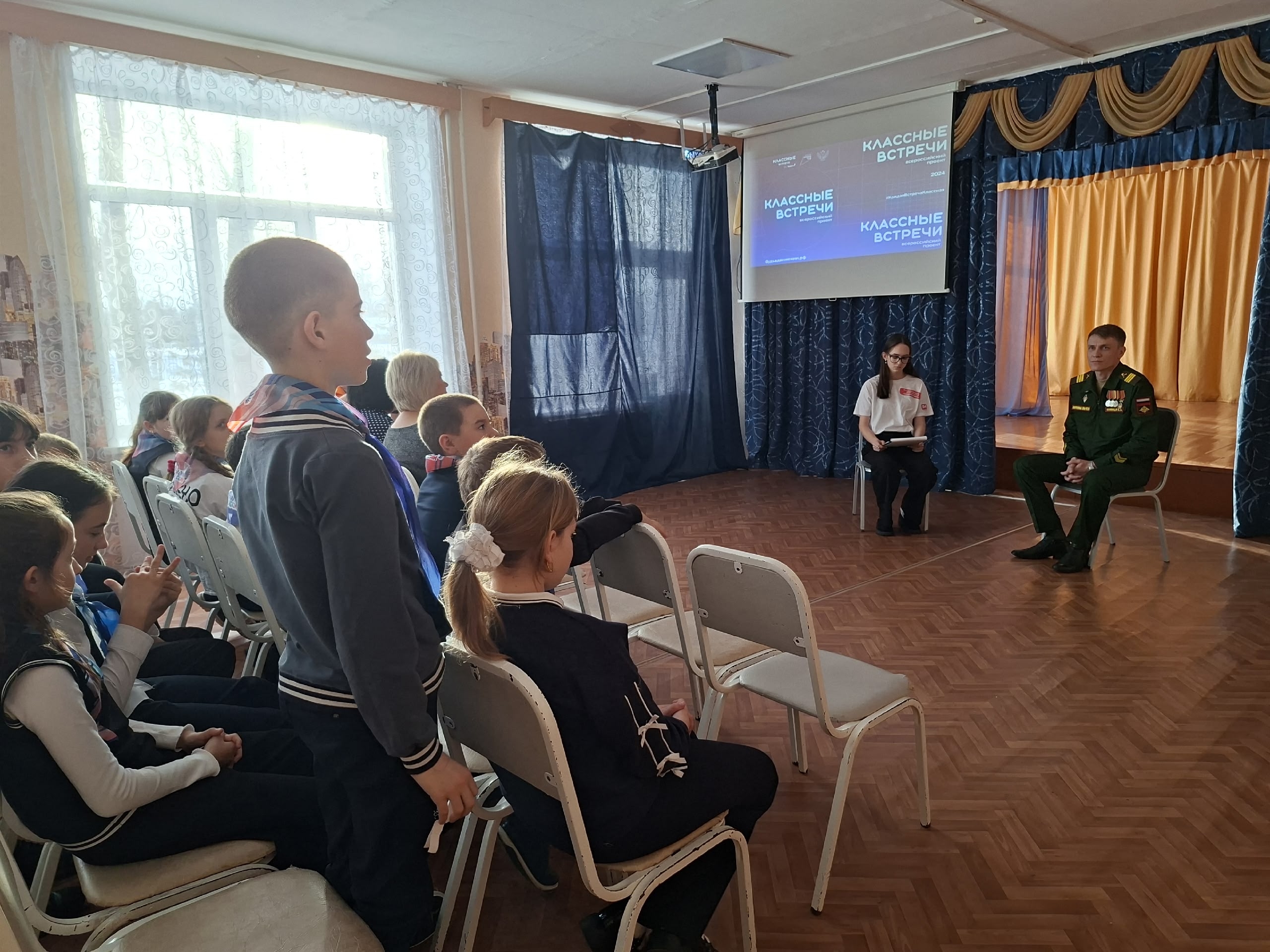 В день героев Отечества Табулгинская школа им. П. Д. Слюсарева стала местом особенного события – «Классной встречи» с героем, участником специальной военной операции Евгением Андреевичем Копиця.
